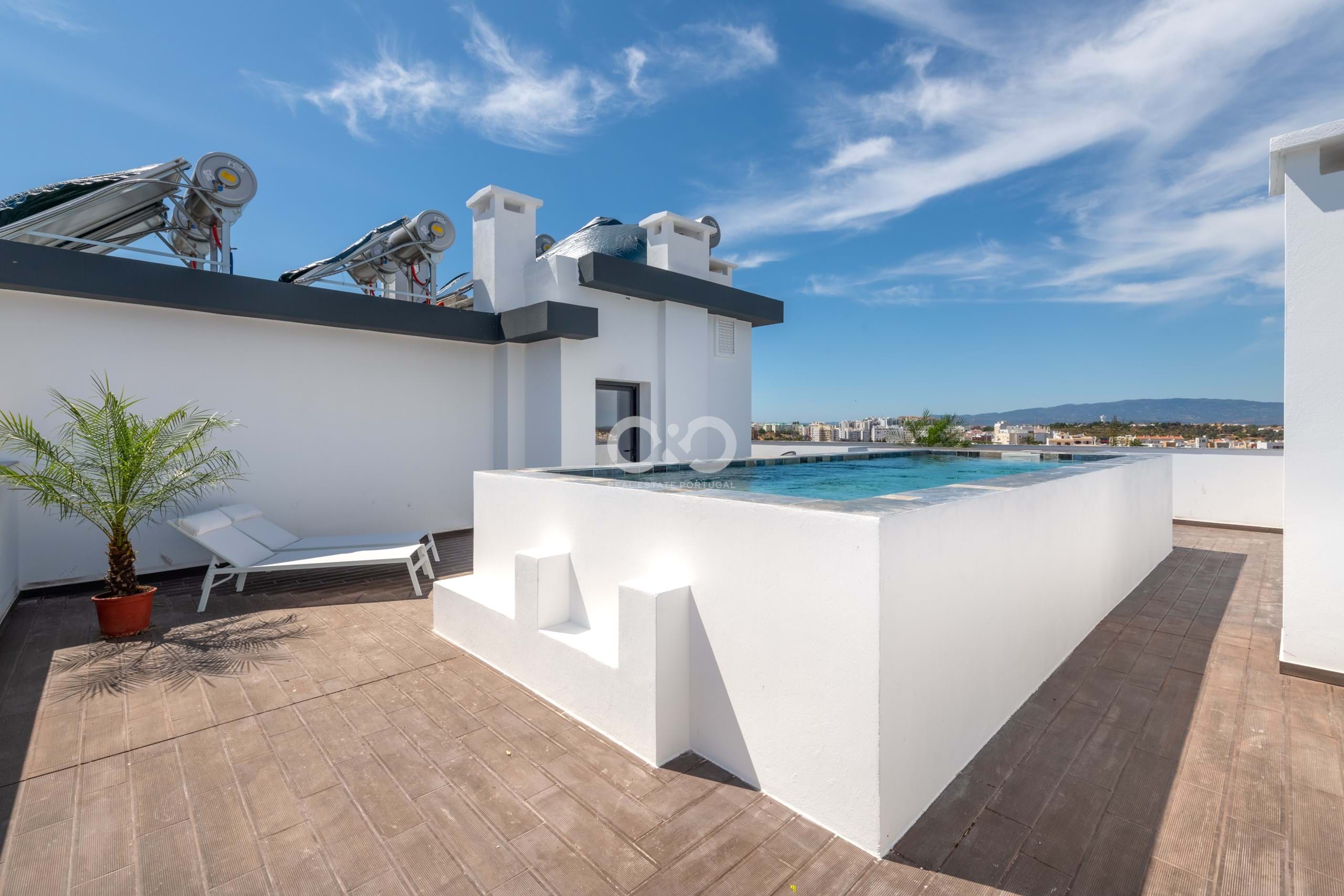 Le bâtiment dispose d’une piscine extérieure sur le toit avec vue panoramique sur la ville de Portimão, la rivière Arade, les montagnes de Monchique et la mer. Compte