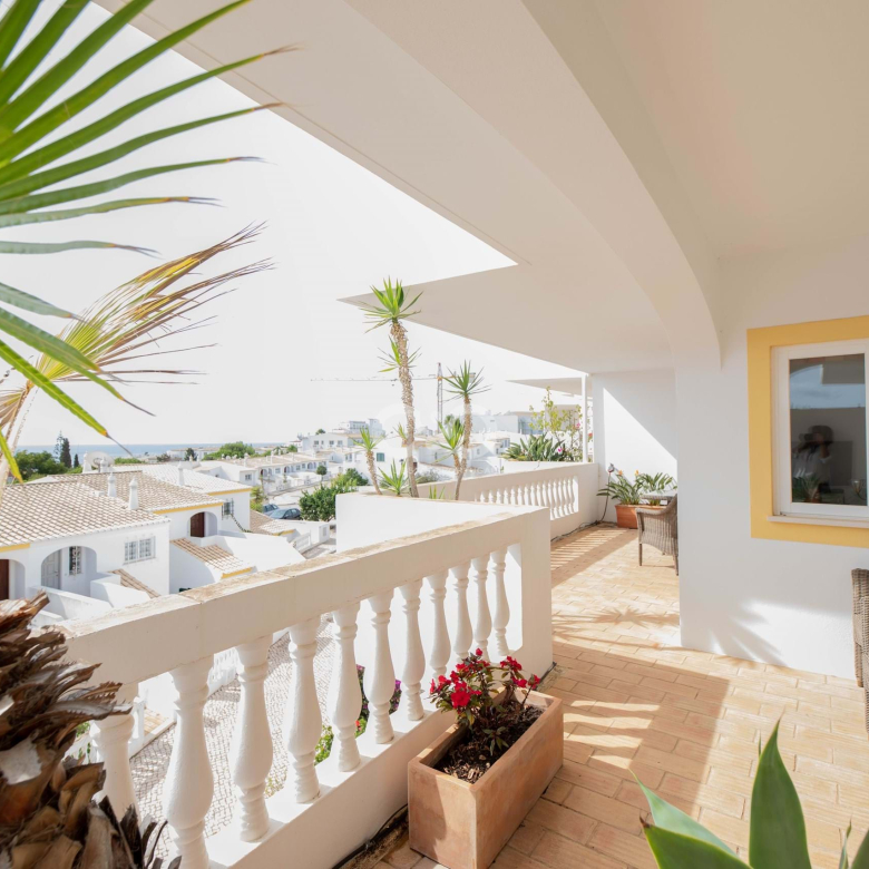 The property with great sun exposure and exceptionally large balcony with a breathtaking view is composed: Spacious living/dining room with fireplace, fully equipped kitchen equipped with open area to the living room to be able to socialize with family while preparing a pleasant meal, 2 good sized bedrooms with built-in wardrobes, one of them en suite, a further bathroom , magnificent balcony running full length between the master bedroom and living room overlooking the sea and village of Praia da Luz.